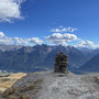 Die Gondel nach Schlivera war in Revision - Steffi hat mich dennoch bis zur Chamanna begleitet. Nach einer Traverse zur Alp Clünas begann der Aufstieg. Die letzten 80 Hm zwischen den Lawinenverbauungen und dem Piz waren ordentlich steil. Oben war es relativ windig - die Aussicht imposant, u.a. auf die Unterengadiner Dolomiten.